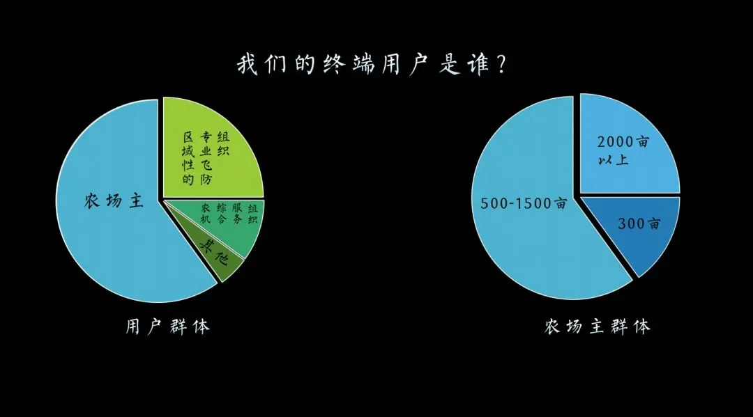 Based on such a market, who are our end users? We have divided them into the following groups: farm owners, regional professional aerial application organizations, and comprehensive agricultural machinery service organizations.